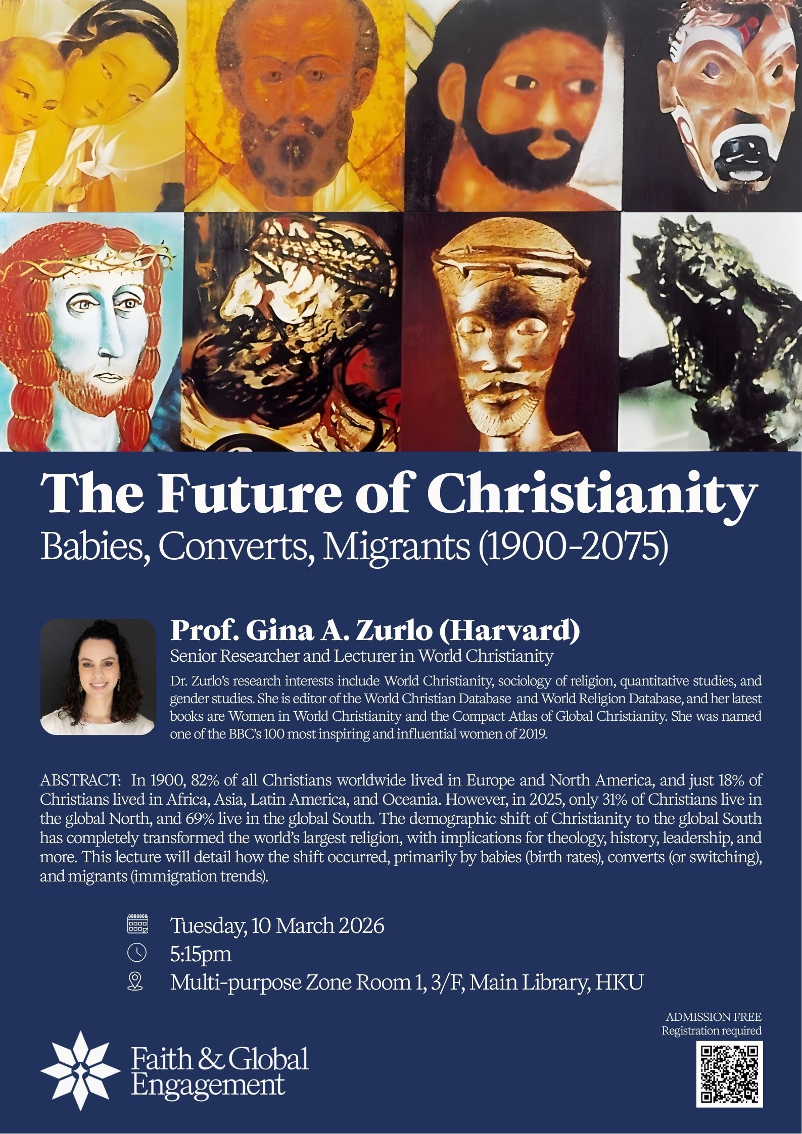 In 1900, 82% of all Christians worldwide lived in Europe and North America, and just 18% of Christians lived in Africa, Asia, Latin America, and Oceania. However, in 2025, only 31% of Christians live in the global North, and 69% live in the global South. The demographic shift of Christianity to the global South has completely transformed the world’s largest religion, with implications for theology, history, leadership, and more. This lecture will detail how the shift occurred, primarily by babies (birth rates), converts (or switching), and migrants (immigration trends).