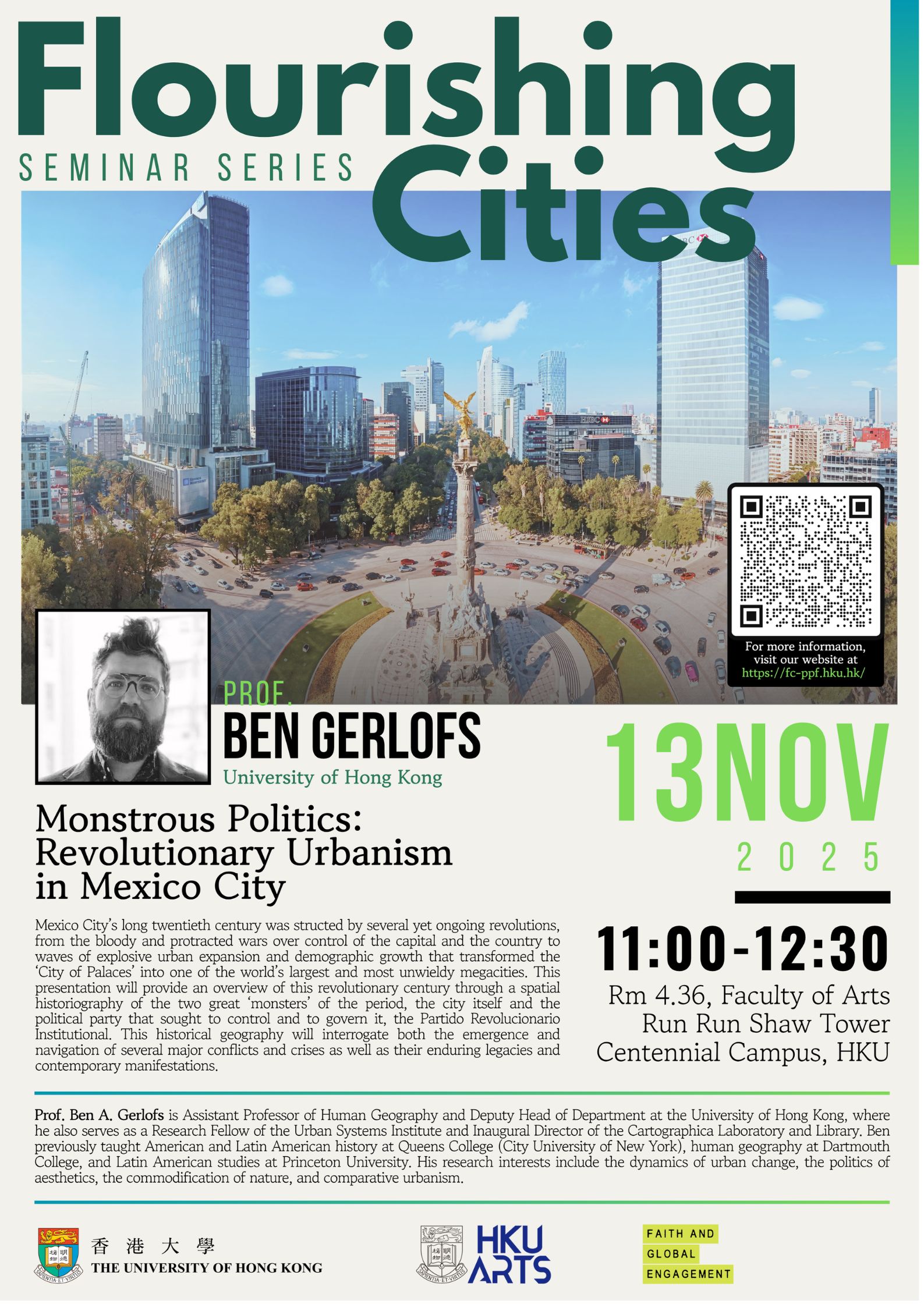 Prof. Ben A. Gerlofs is Assistant Professor of Human Geography and Deputy Head of Department at the University of Hong Kong, where he also serves as a Research Fellow of the Urban Systems Institute and Inaugural Director of the Cartographica Laboratory and Library. Ben previously taught American and Latin American history at Queens College (City University of New York), human geography at Dartmouth College, and Latin American studies at Princeton University. His research interests include the dynamics of urban change, the politics of aesthetics, the commodification of nature, and comparative urbanism.